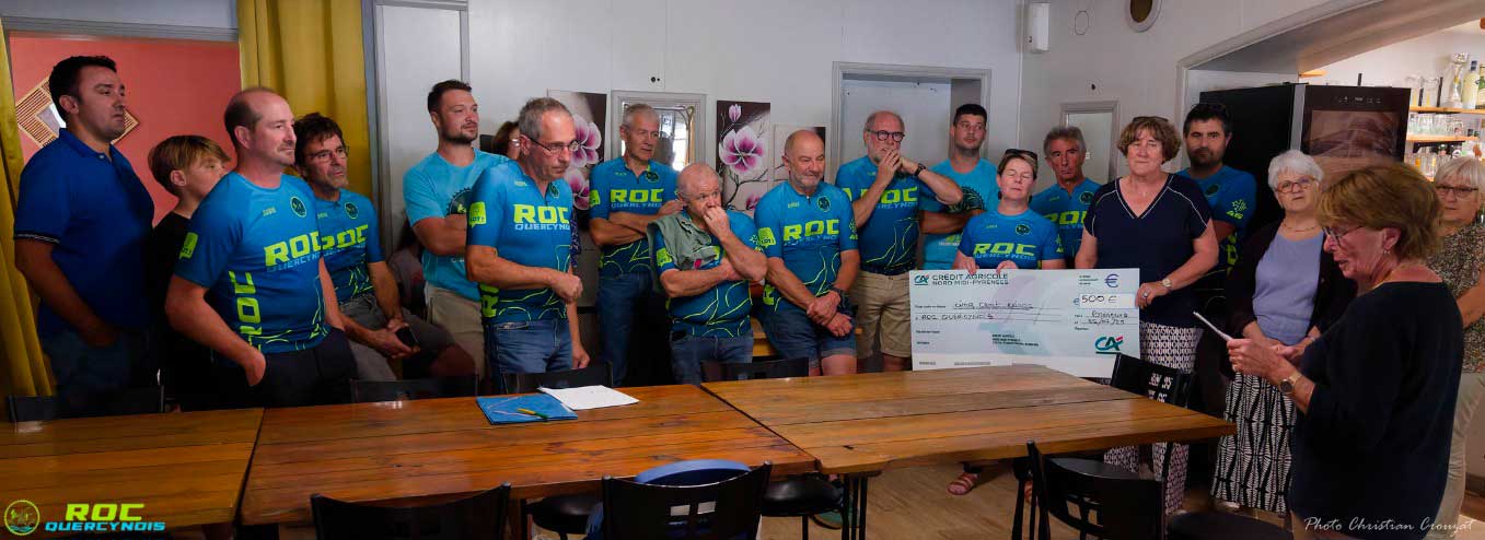 Vendredi soir dernier, les membres de l’association, réunis à Brengues, ont eu le plaisir de remettre un chèque de 828€ aux représentantes de Ligue contre le Cancer du Lot. En effet, comme l’a rappelé notre coprésident Daniel Breil, notre association a décidé depuis maintenant 2 ans de reverser 1€ par inscription à notre évènement Roc Quercynois. La dernière édition s’est déroulée le 25 mai dernier et nous avions accueilli 828 participants (vtt et marche). En parallèle, l’ambassadrice du Crédit Agricole a remis à notre association un chèque de 500€ pour nous aider à continuer l’entretien de nos beaux chemins et nous engager à rendre notre évènement de plus en plus écoresponsable. Merci à tous pour ce moment de solidarité et de partage.